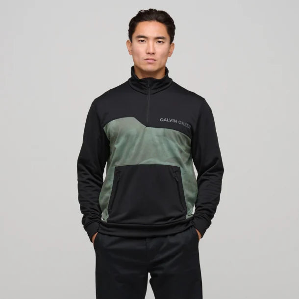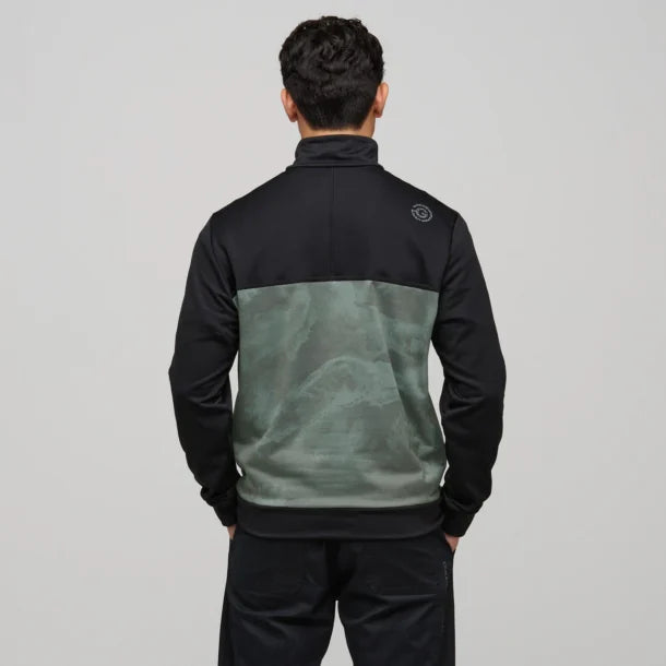 Diaz is an INSULA™ quarter-zip pullover with a zippered kangaroo front pocket and three-needle stitching details. The jacket has a micro stripe printed body and solid sleeves, yoke, and pockets — sewn together with unique angled seams that give this laid-back mid layer a distinctive look.